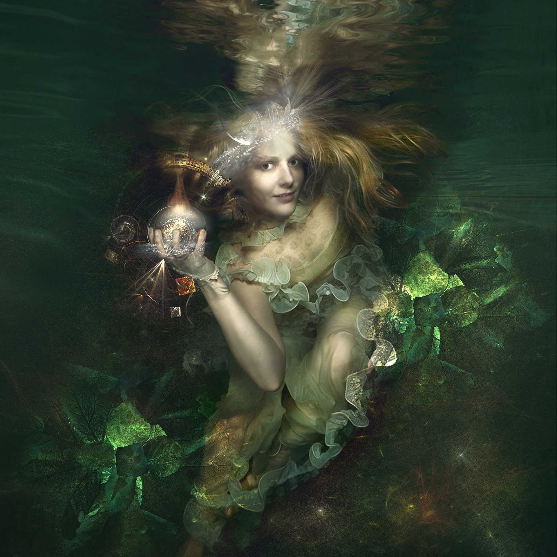 After taking the first steps, she developed a meticulous process that transmutes photography into a kind of visual alchemy by intricately placing real photographic elements with digitally hand painted backgrounds, artistry techniques such as layering, texturing, and compositing.